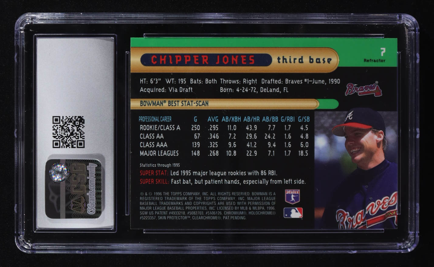 Chipper Jones 1996 Bowman's Best Refractors #7 (CSG 8)