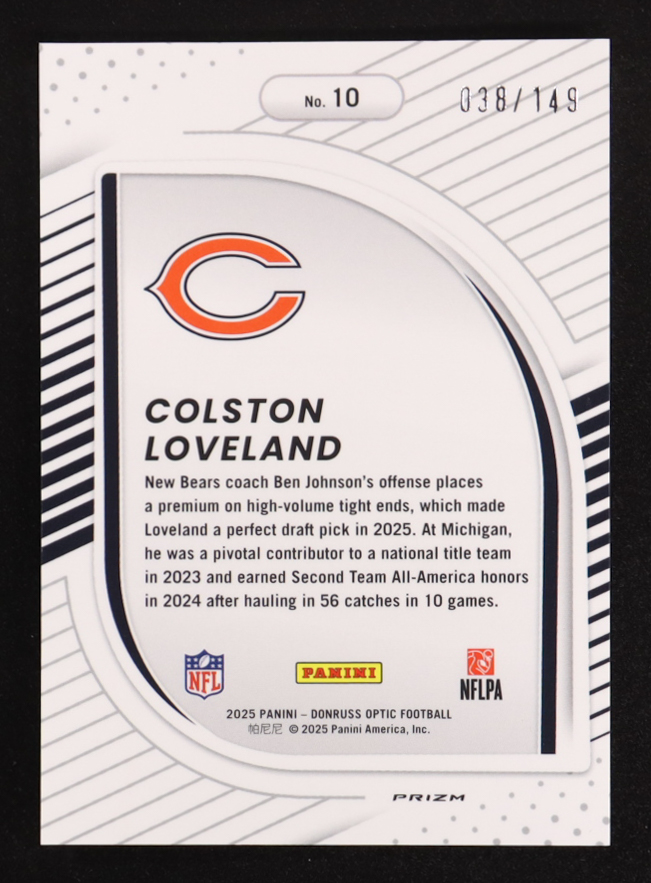Colston Loveland 2025 Panini Donruss Optic Hidden Potential #10 RC #038/149