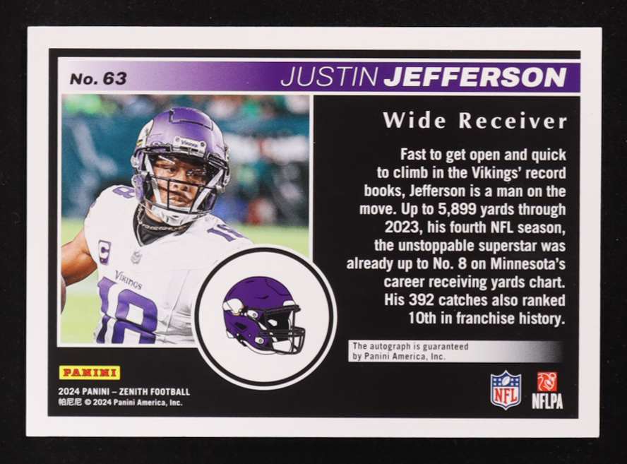 Justin Jefferson 2024 Zenith Red Zone Autographs Blue #63 #24/25