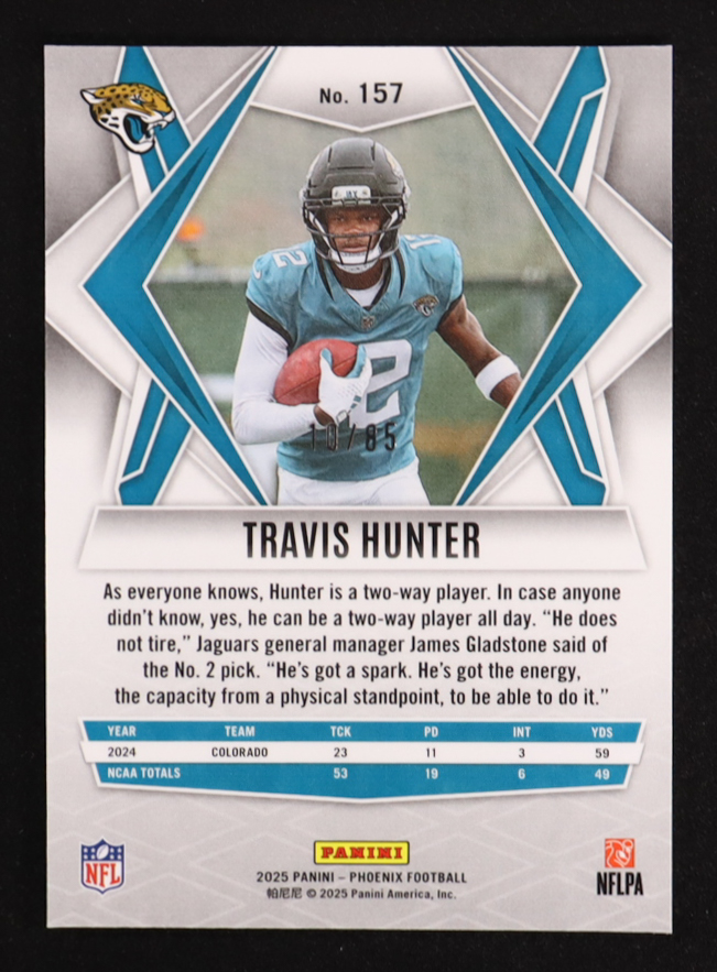 Travis Hunter 2025 Panini Phoenix Light Blue Mojo #157 RC #10/85