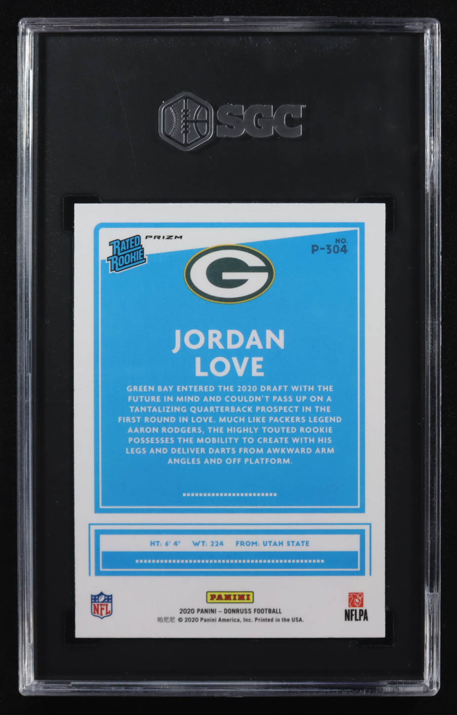 Jordan Love 2020 Donruss Optic Preview Red and Green #P304 RR RC (SGC 10)