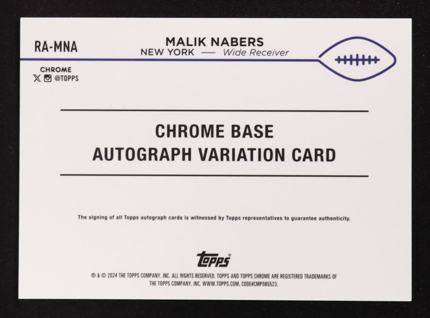 Malik Nabers 2024 Topps Chrome Rookie Autographs Refractors #RAMNA RC