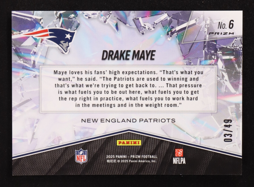 Drake Maye 2025 Panini Prizm Break #6 #03/49