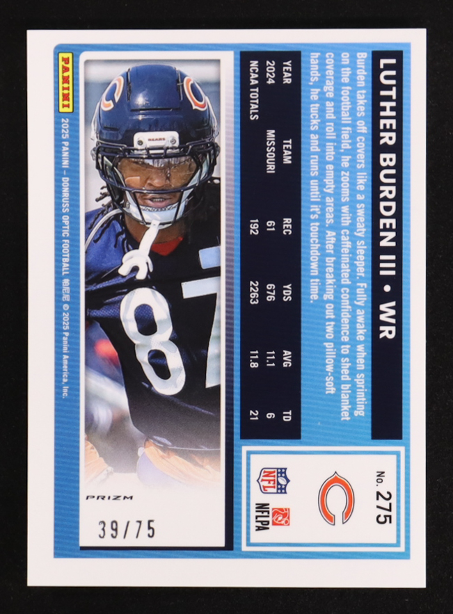 Luther Burden III 2025 Panini Donruss Optic RR Electricity #275 RC #39/75