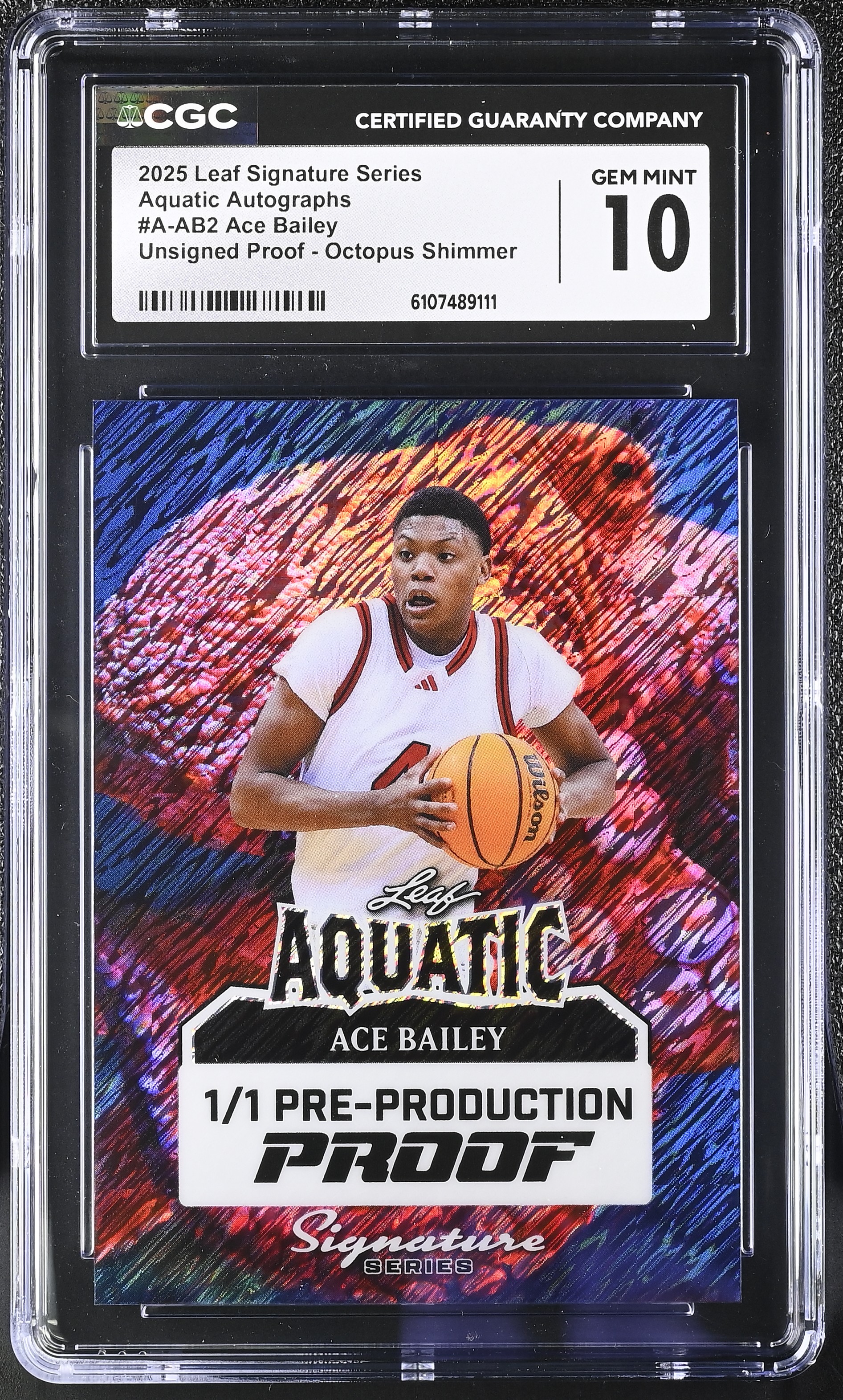 Ace Bailey 2025 Leaf Signature Series Aquatic Autographs Pre-Production Proof Octopus Shimmer #A-AB2 #1/1 RC (CGC 10)