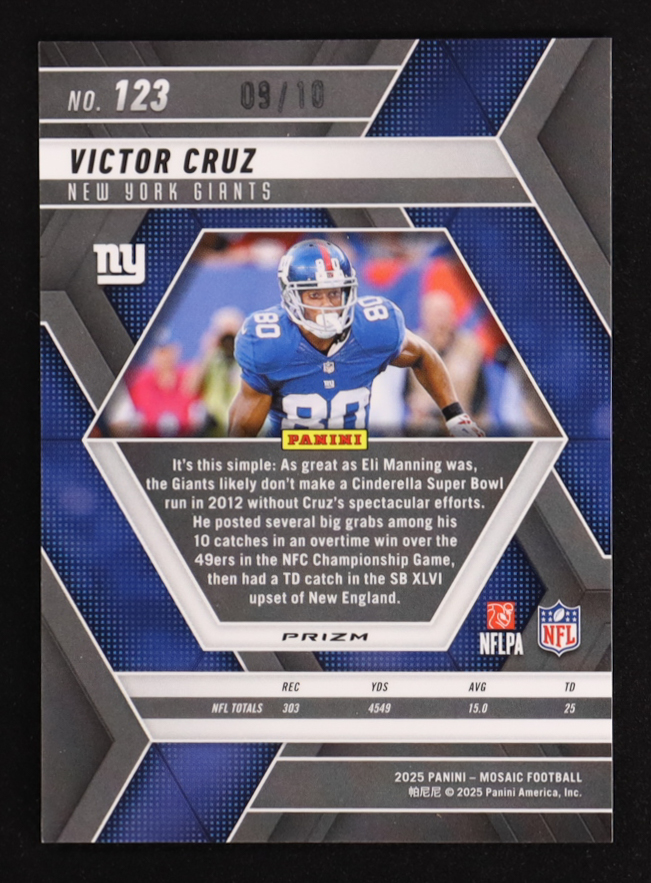 Victor Cruz 2025 Panini Mosaic No Huddle Gold #123 #09/10