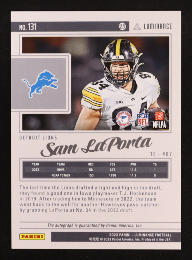 Sam LaPorta 2023 Panini Luminance Autographs #131 #327/350 RC