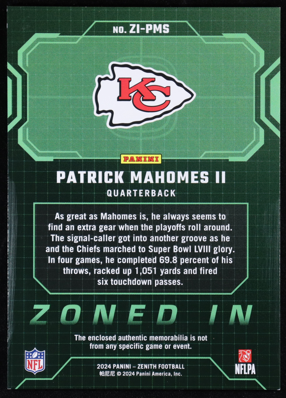Patrick Mahomes II 2024 Zenith Zoned In Jerseys #8