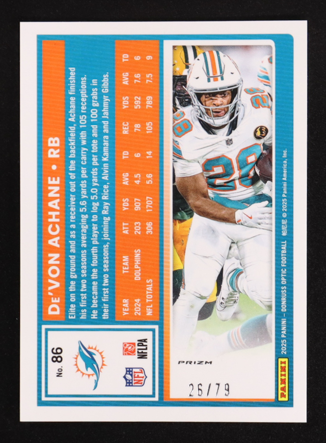 Devon Achane 2025 Panini Donruss Optic Orange Scope #86 #26/79