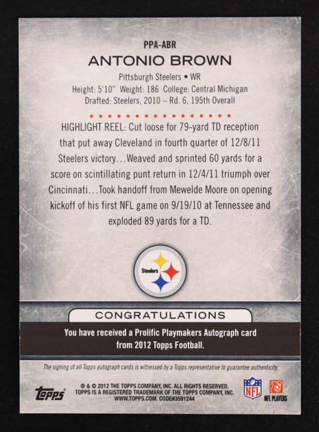 Antonio Brown 2012 Topps Prolific Playmakers Autographs #PPAABR