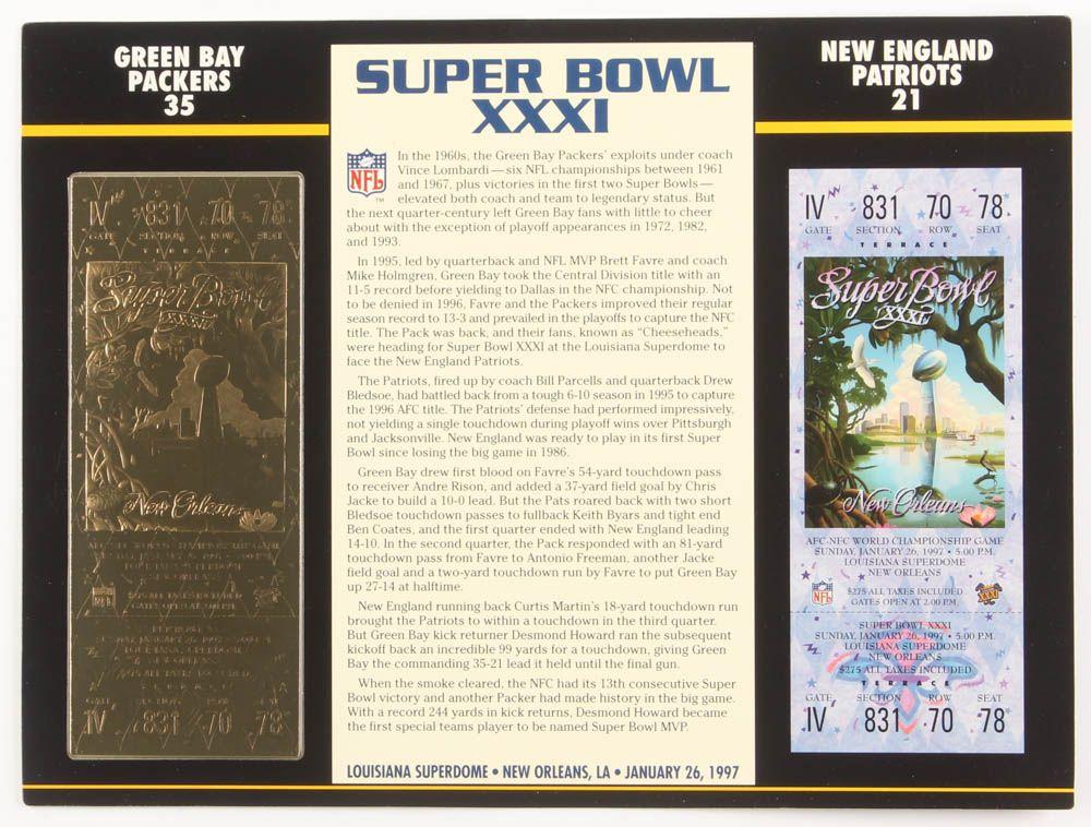 1997 Commemorative Super Bowl XXXI Card with Gold Ticket: Packers vs Patriots