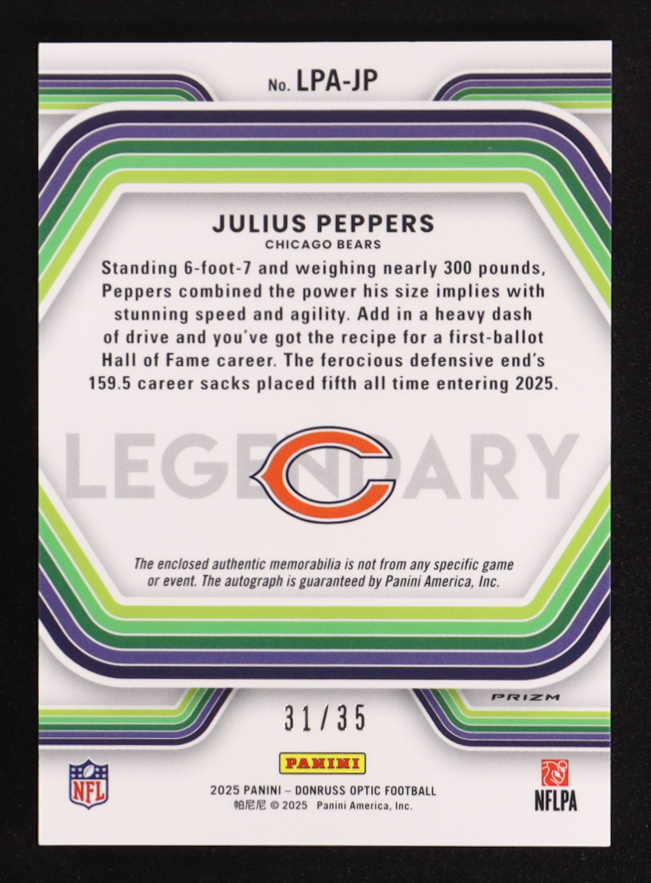 Julius Peppers 2025 Panini Optic Legendary Patch Autographs #LPA-JP #31/35