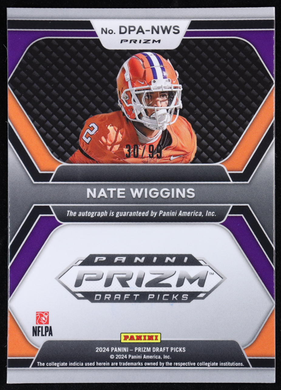 Nate Wiggins 2024 Panini Prizm Draft Picks Autographs Purple Ice #64 #30/99 RC