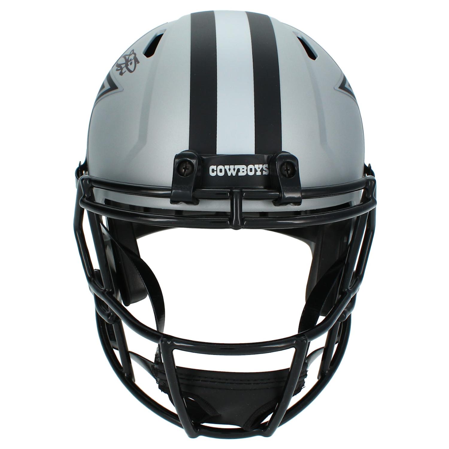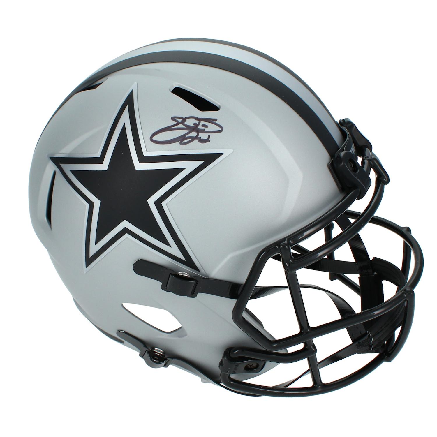 Riddell Dallas Cowboys full-size rave alternate speed replica helmet has been hand-signed by Emmitt Smith (HOF).