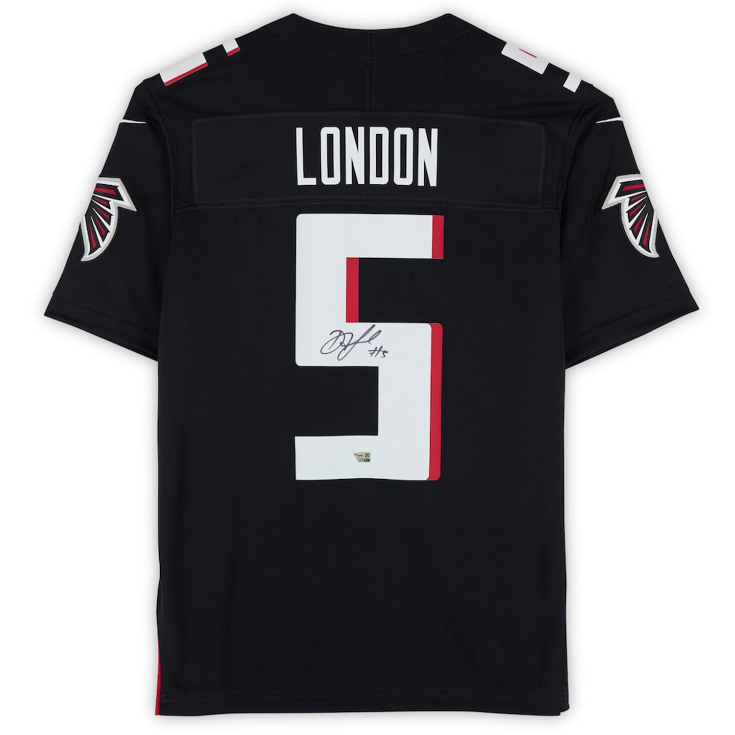 Nike jersey with everything pressed on, size 48. Hand-signed by Drake London (Atlanta Falcons).