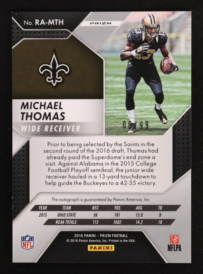 Michael Thomas 2016 Panini Prizm Rookie Autographs Prizms Purple Scope #13 #08/99 RC