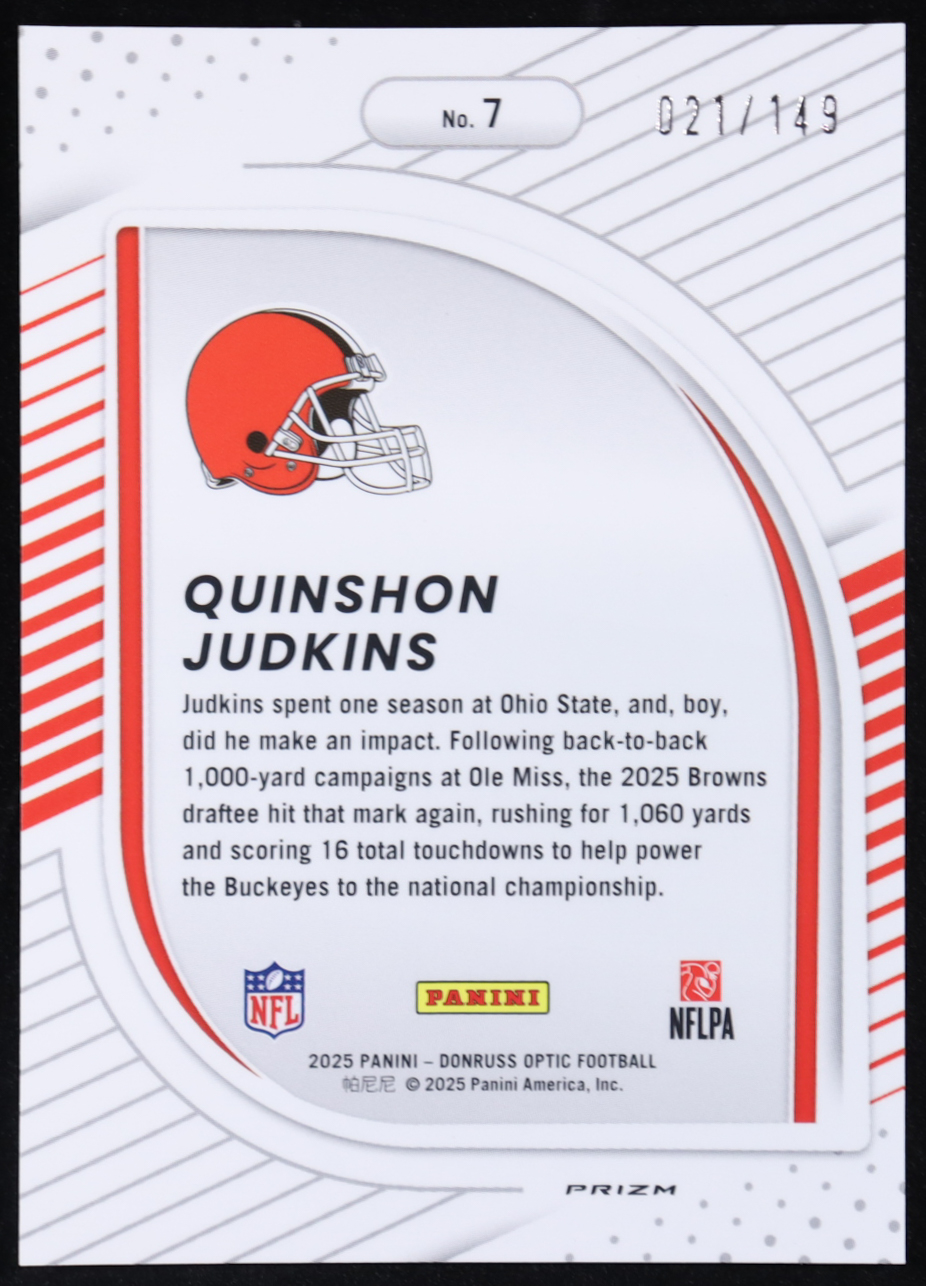Quinshon Judkins 2025 Donruss Optic Hidden Potential Black Pandora #7 #021/149 RC
