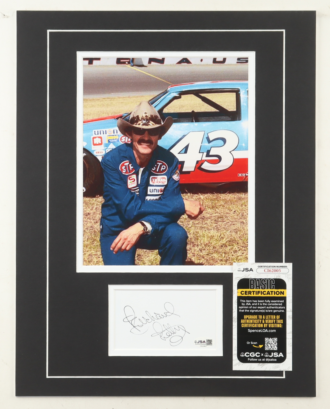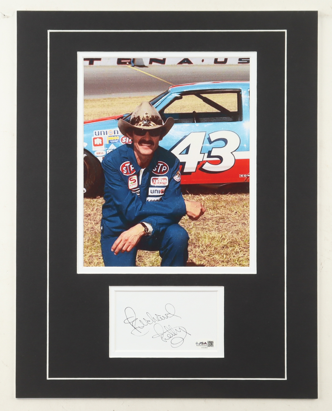 Richard Petty Signed 14x18 Custom Matted Cut Display with Photo (JSA)