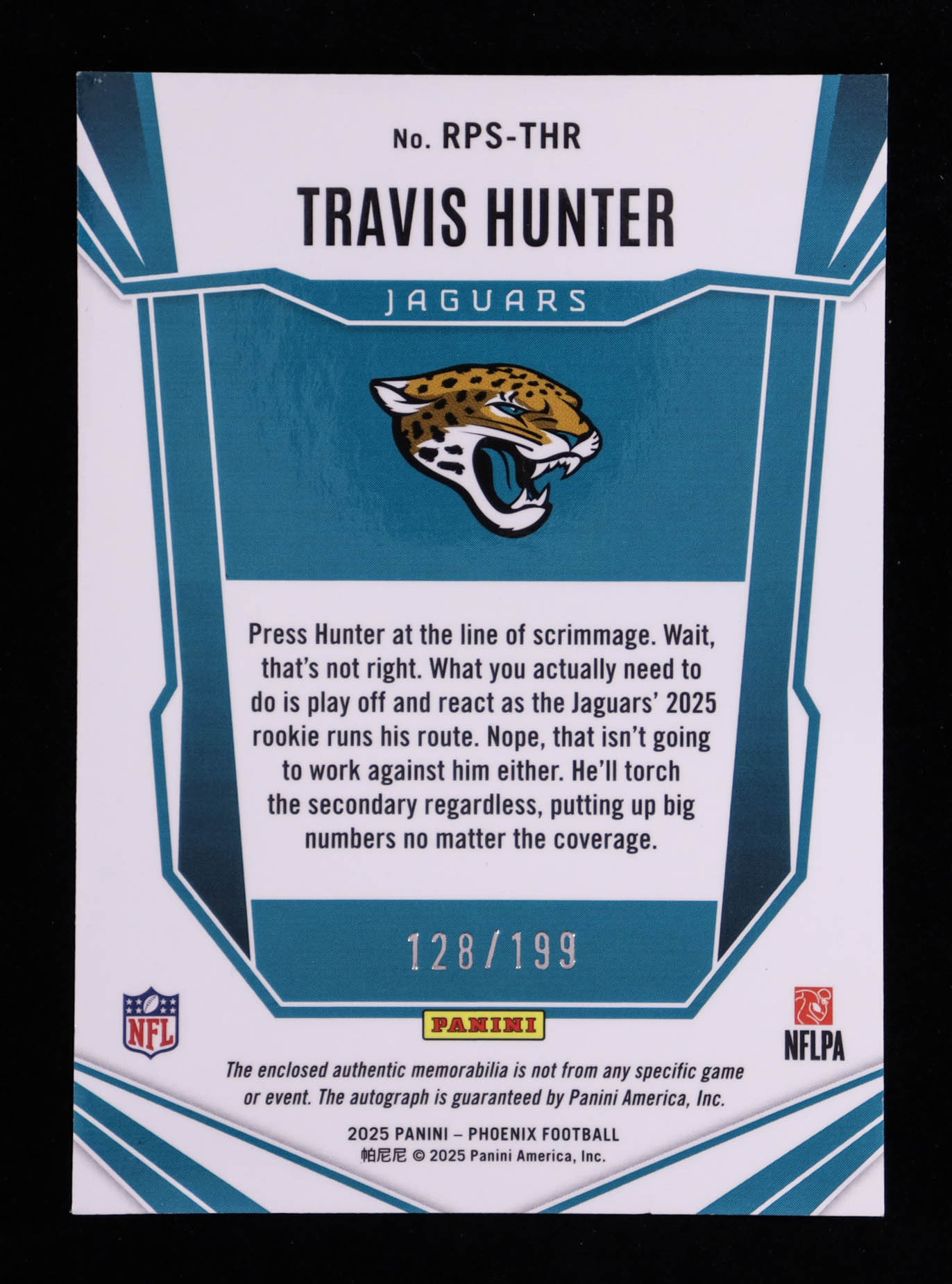 Travis Hunter 2025 Panini Phoenix Rookie Patch Autographs #19 RC #128/199
