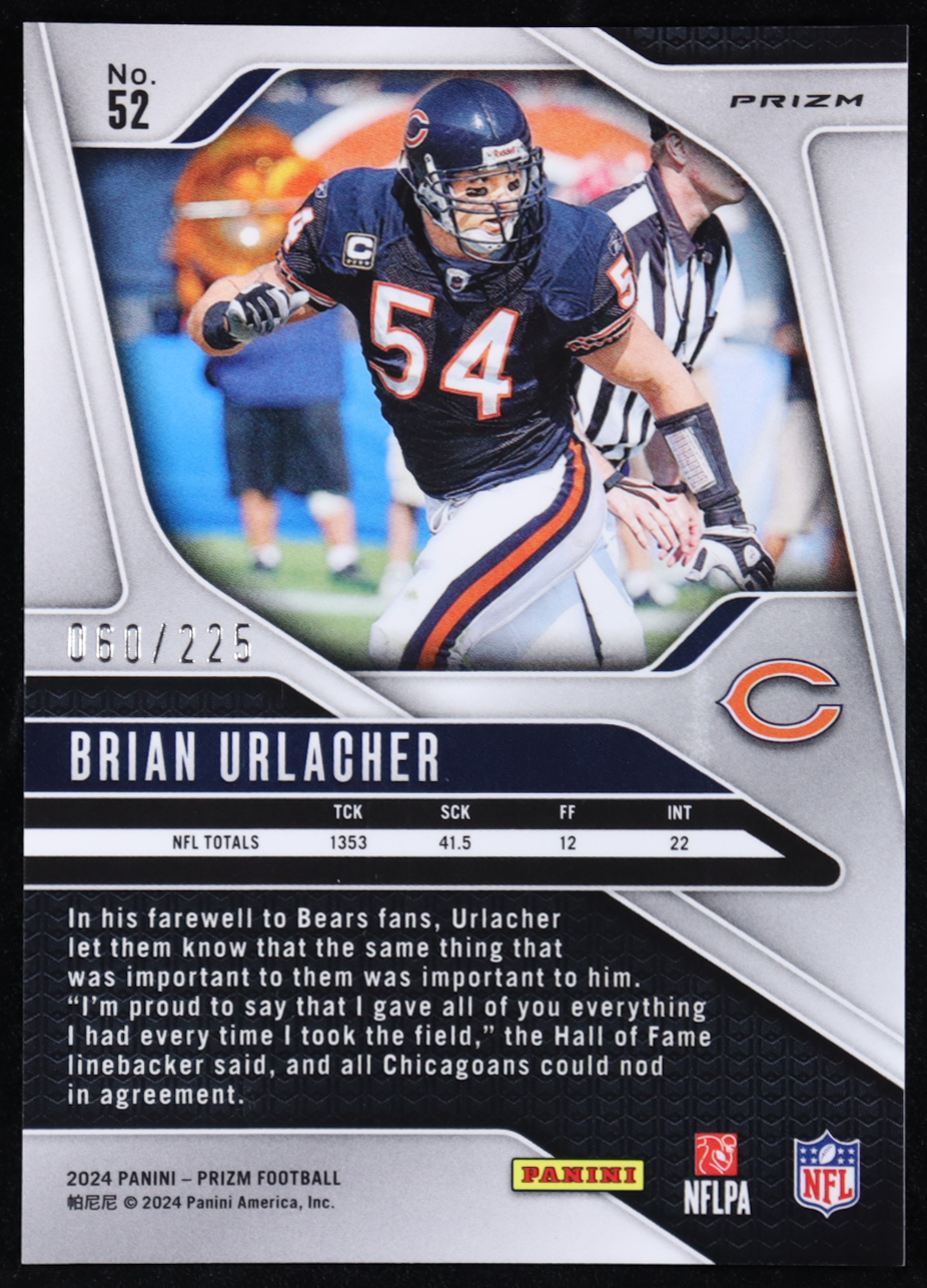 Brian Urlacher 2024 Panini Prizm Prizms Purple Ice #52 #060/225