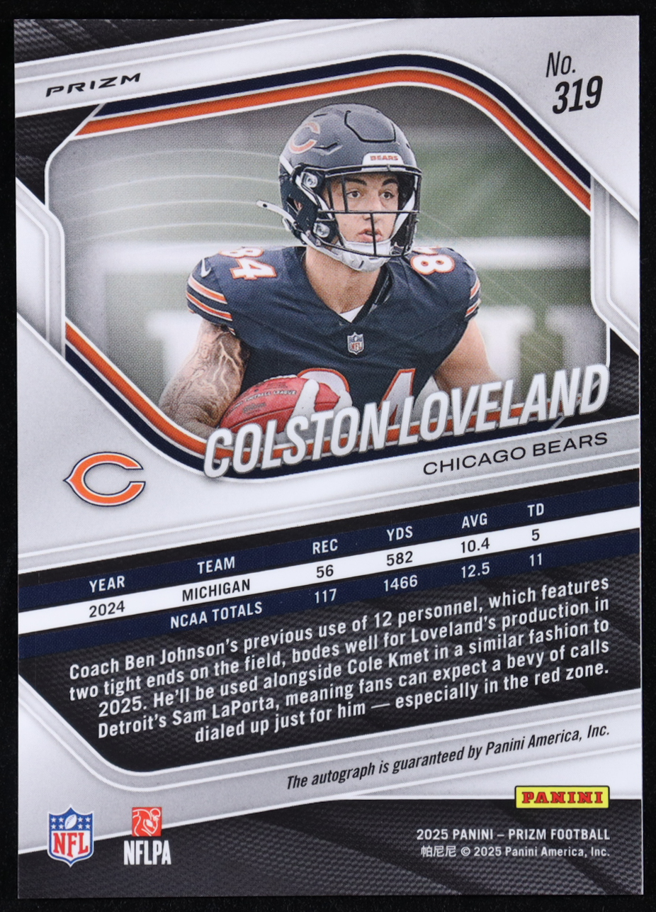 Colston Loveland 2025 Panini Prizm Autographs Prizms Silver #319 RC