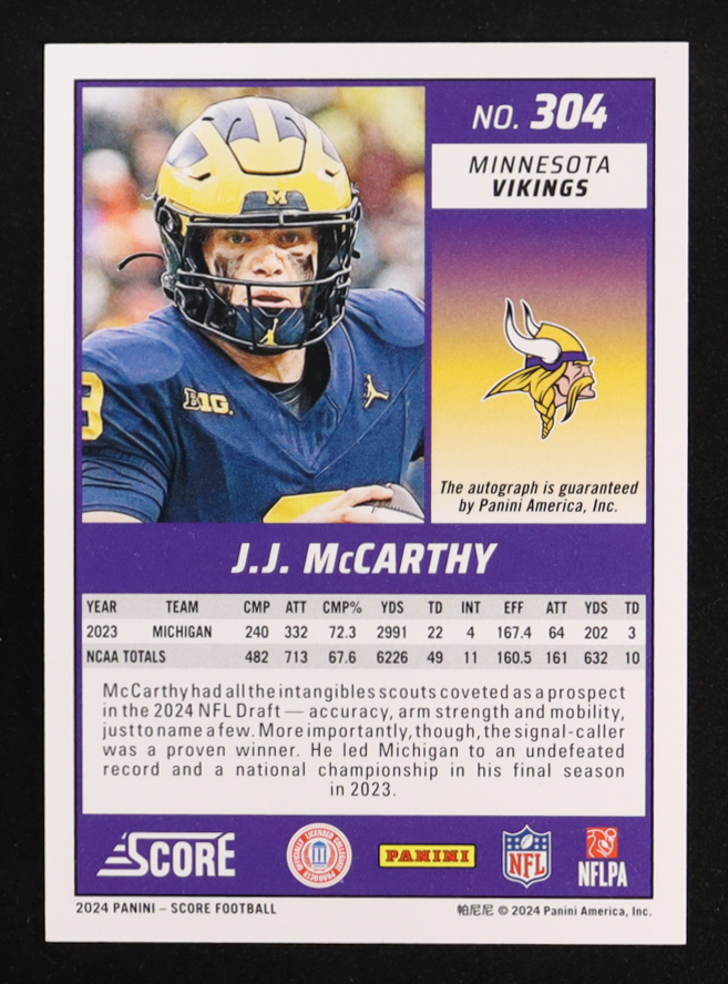 J.J. McCarthy 2024 Score Signatures #304 RC