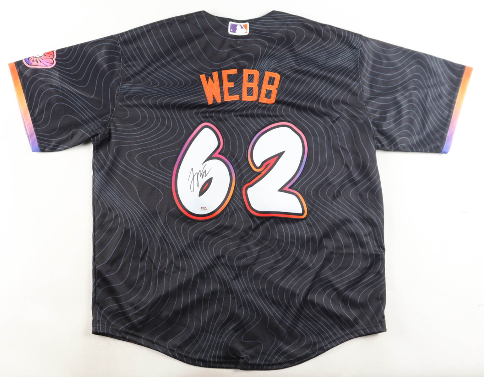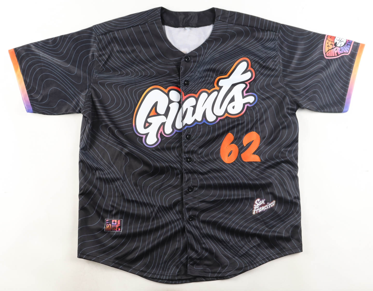 Custom jersey with everything sewn on, size XL. Hand-signed by Logan Webb.