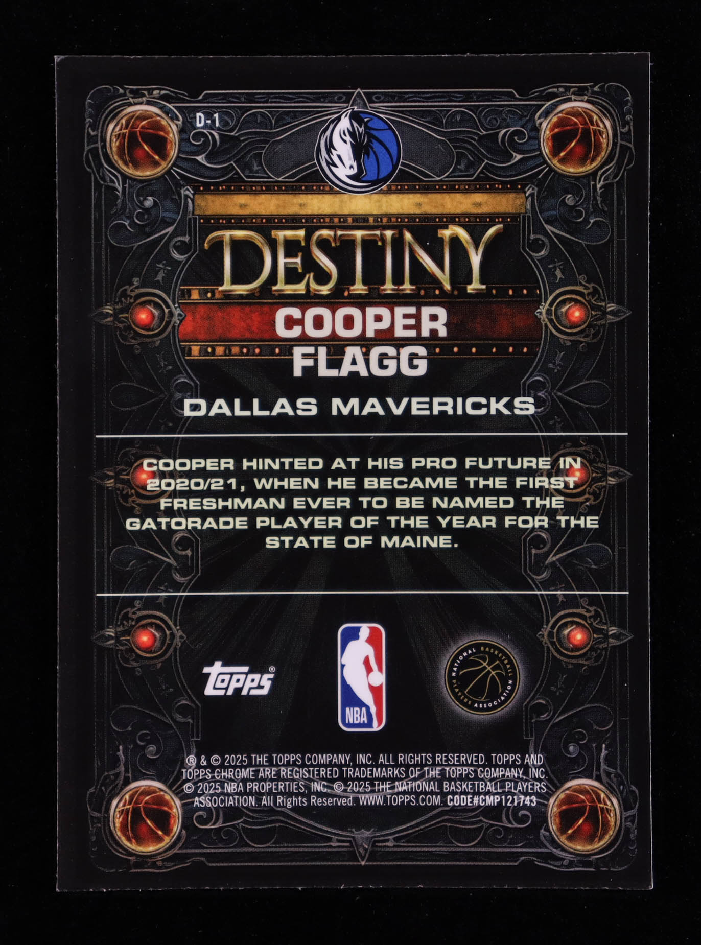 Cooper Flagg 2025-26 Topps Chrome Destiny #D1 RC