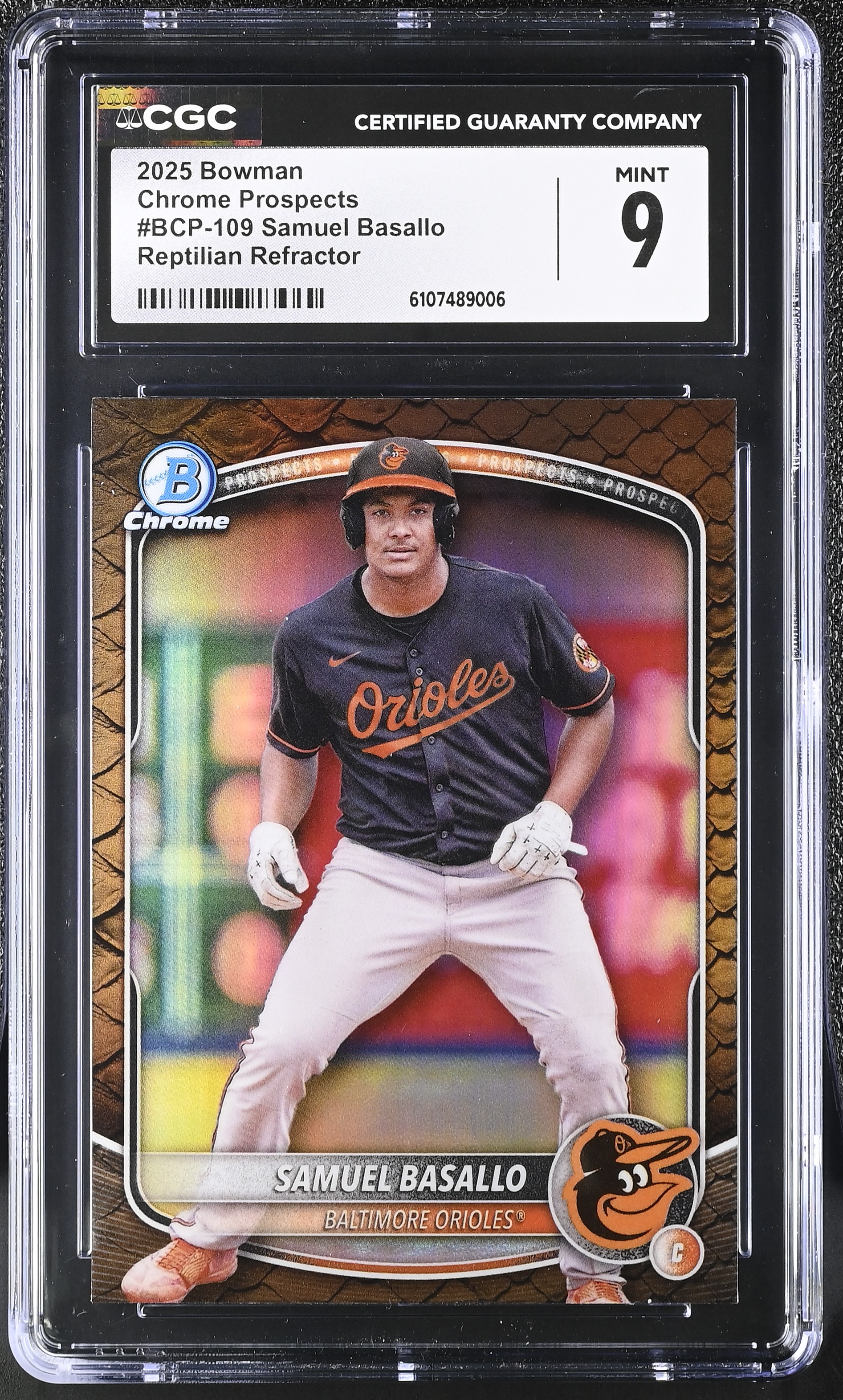 Samuel Basallo 2025 Bowman Chrome Prospects Reptilian Refractor #BCP-109 RC (CGC 9)