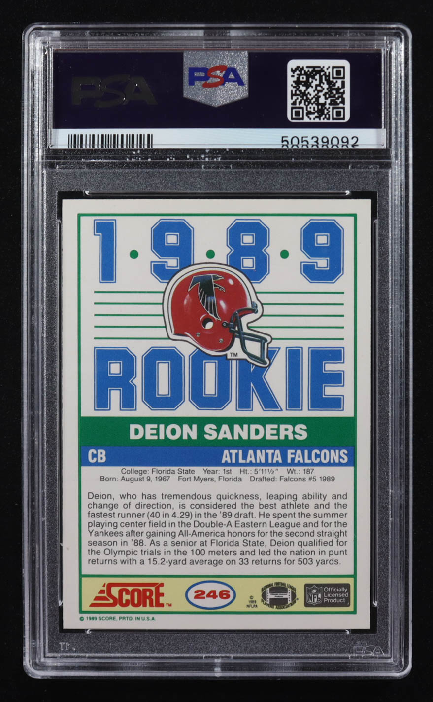 Deion Sanders 1989 Score #246 RC (PSA 9)