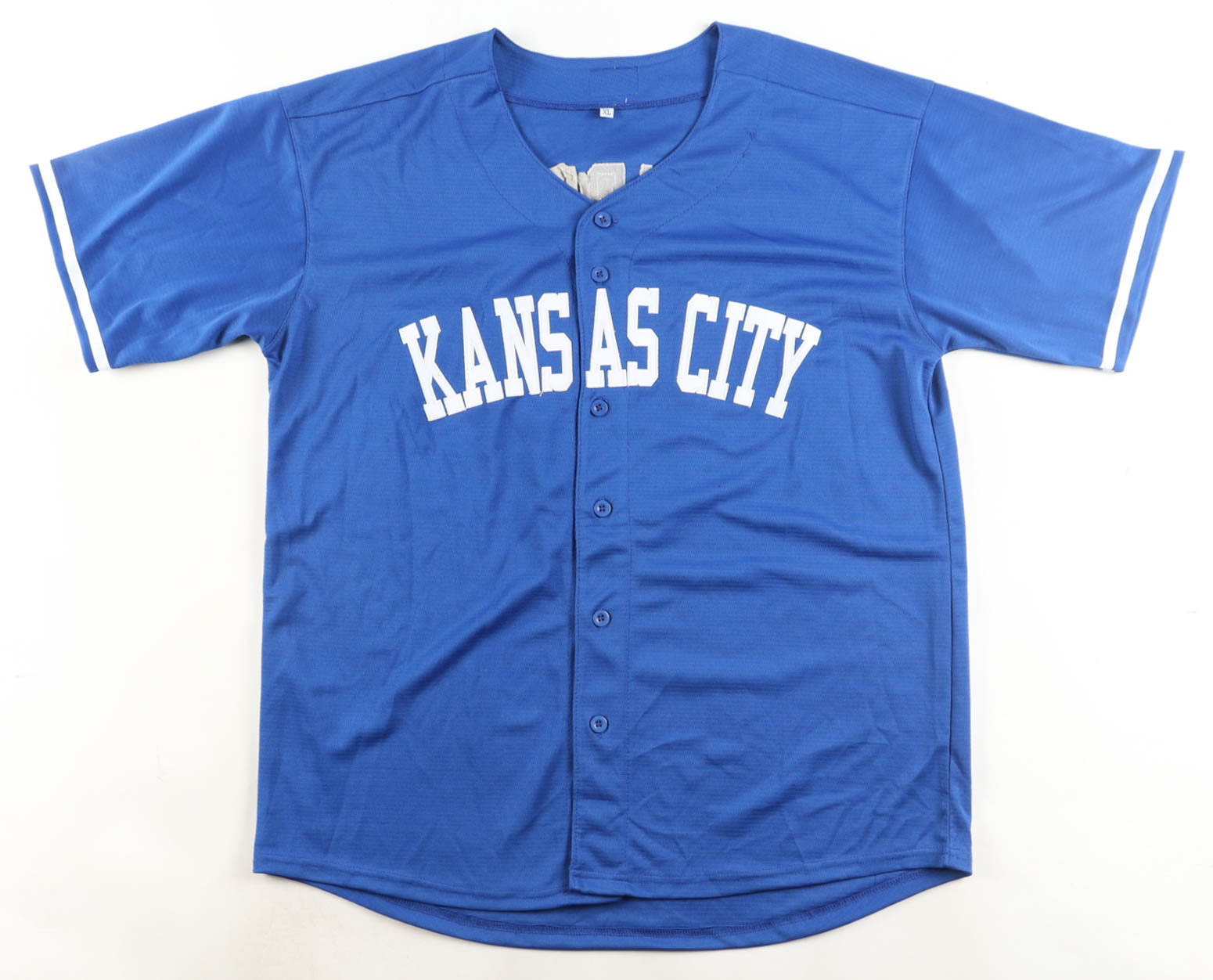 Custom jersey with everything sewn on, size XL. Hand-signed by Jonathan India.