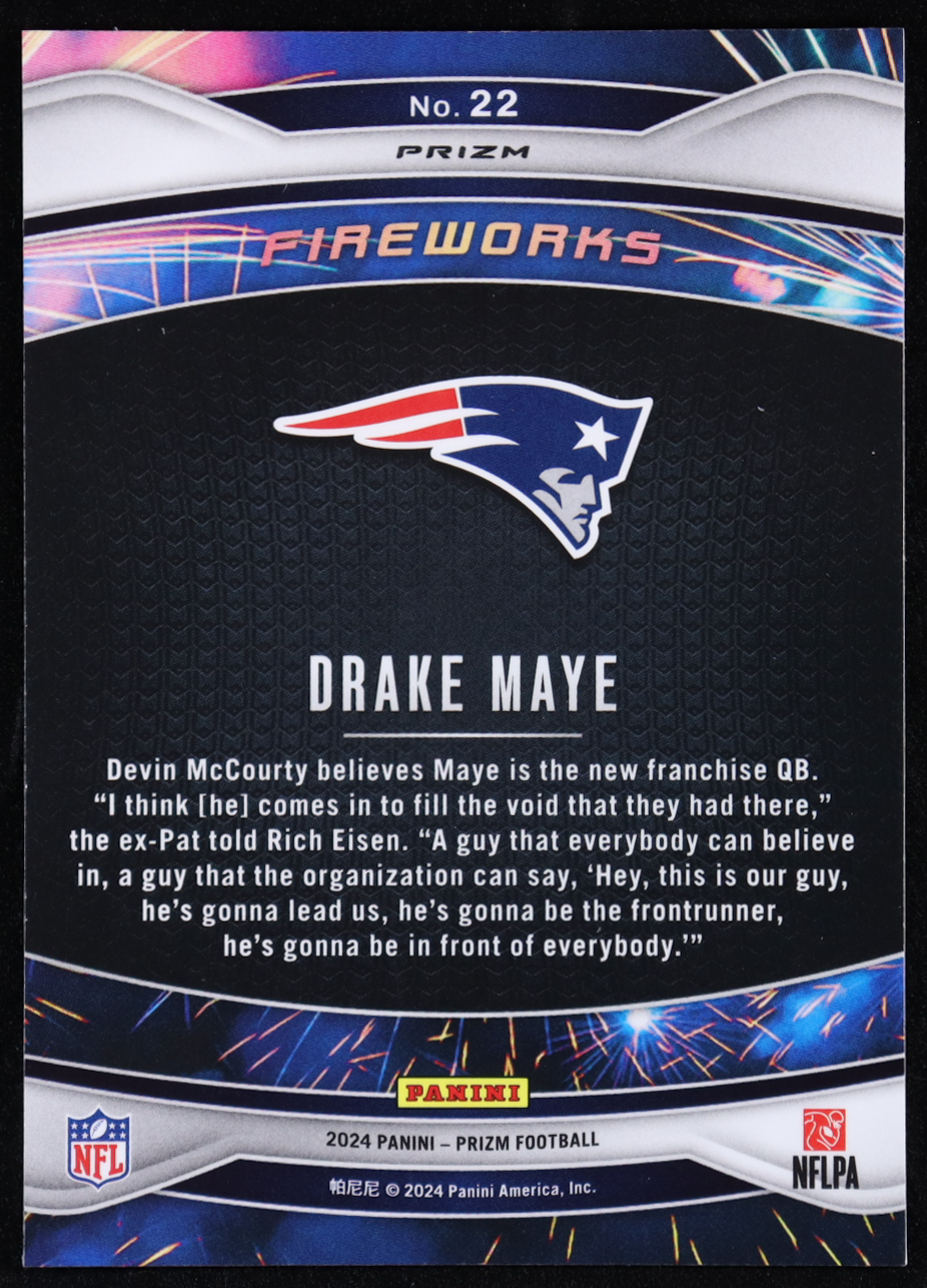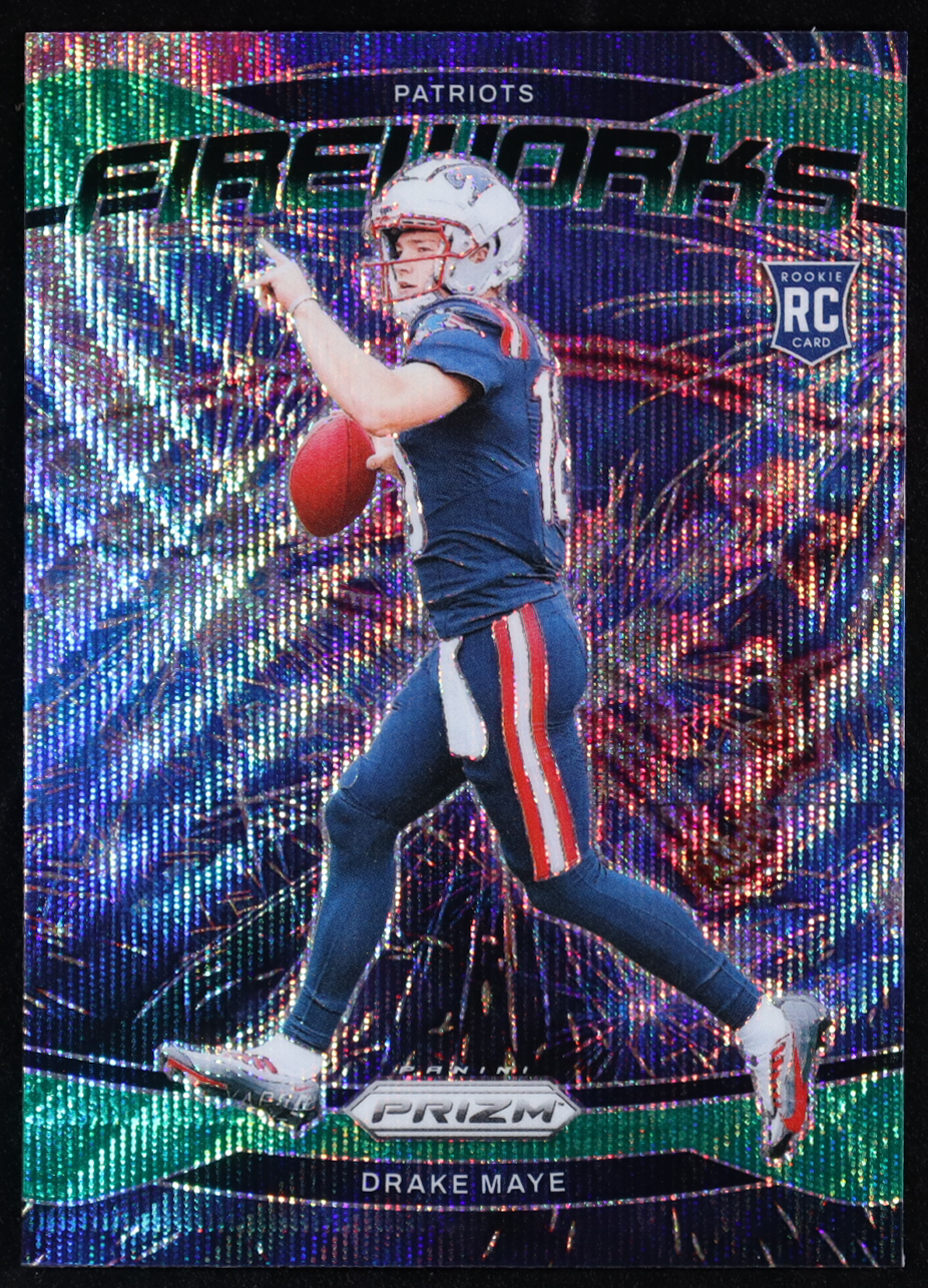 Drake Maye 2024 Panini Prizm Fireworks Prizms Green Wave #22 RC