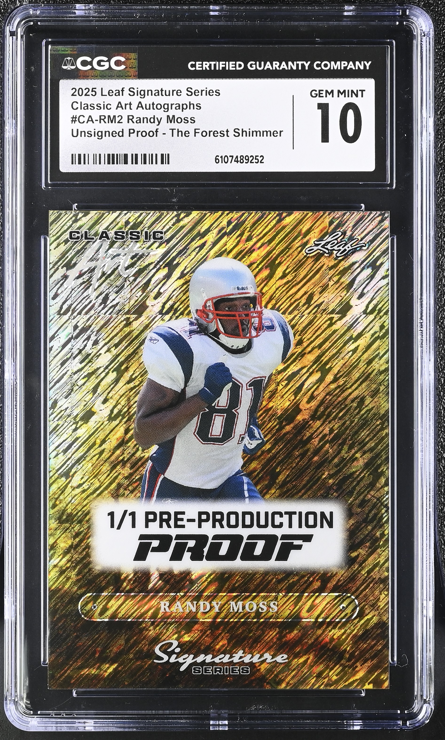 Randy Moss 2025 Leaf Signature Series Classic Art Autographs Unsigned Proof The Forest Shimmer #CA-RM2 #1/1 (CGC 10)