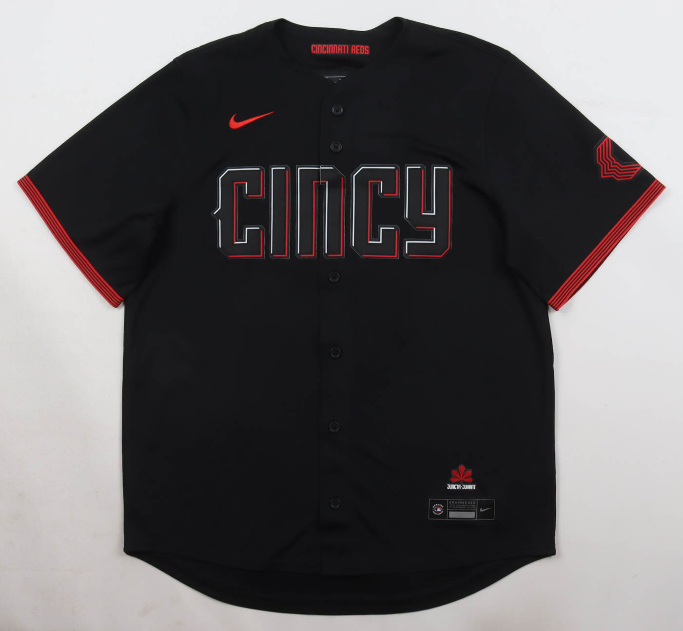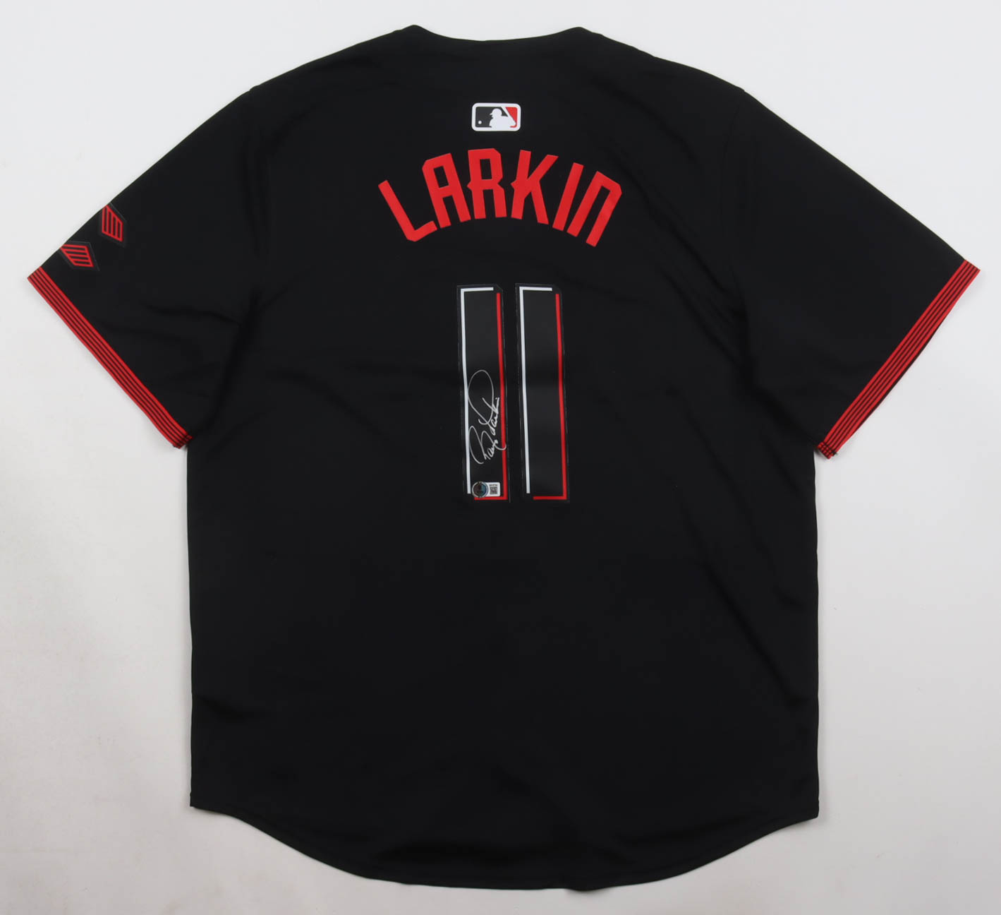 Nike jersey, everything is pressed on, size L. Hand-signed by Barry Larkin (Cincinnati Reds, HOF).