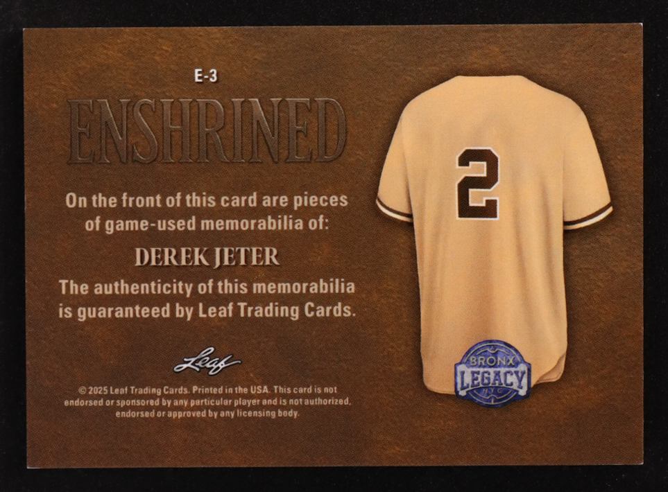 Derek Jeter 2025 Leaf A Bronx Legacy Enshrined Memorabilia Spectrum Bronze Holofoil Game-Used #E3 #39/50