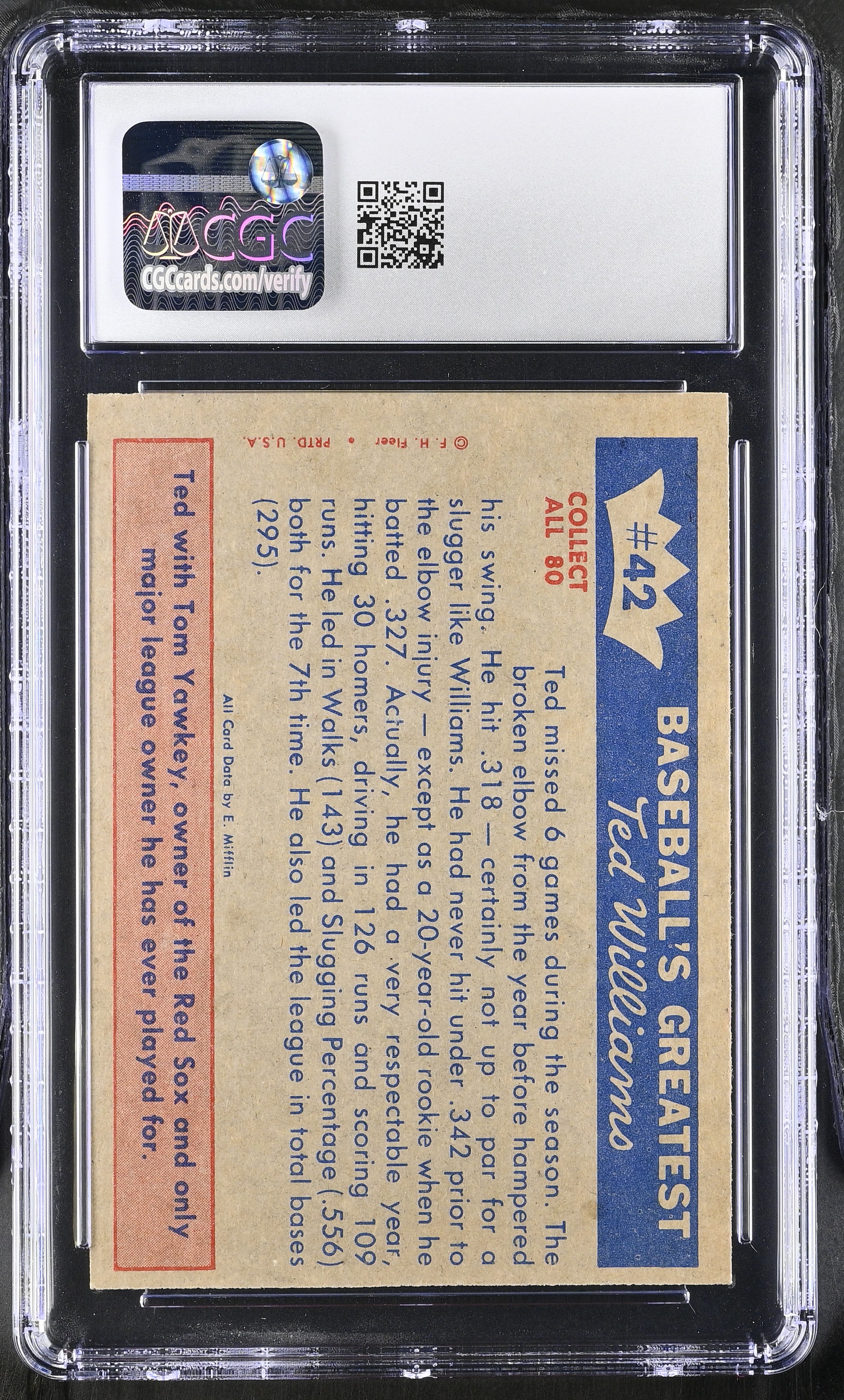 Ted Williams 1959 Fleer Ted Williams #42 1951 Williams Slowed By Injury (CGC 8)