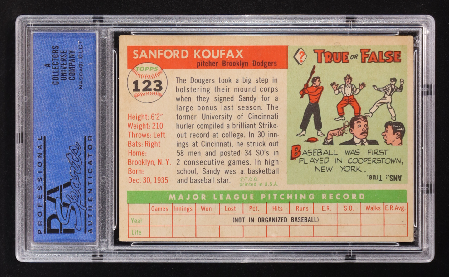 Sandy Koufax 1955 Topps #123 RC (PSA 5)