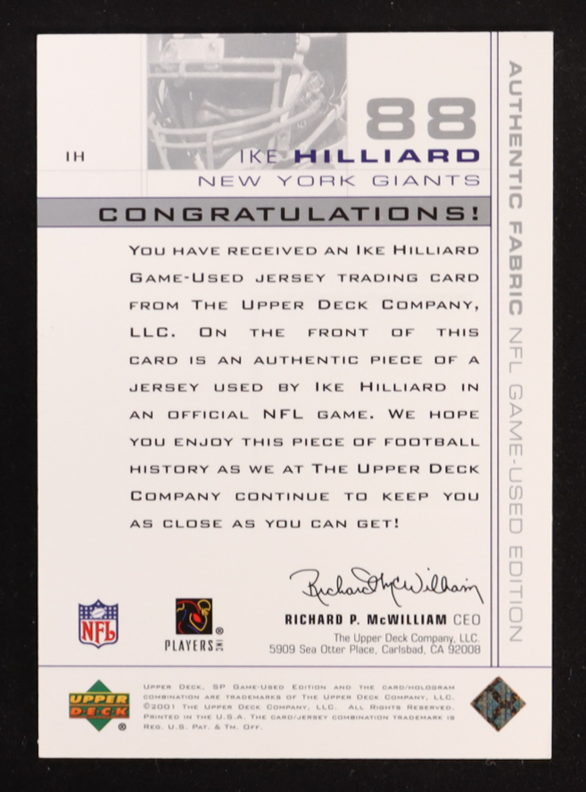 Ike Hilliard 2001 SP Game Used Edition Authentic Fabric #IH