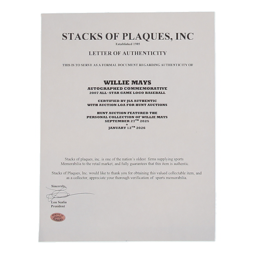 Willie Mays Signed 2007 All-Star Game Logo Baseball (JSA & Stacks of Plaques)