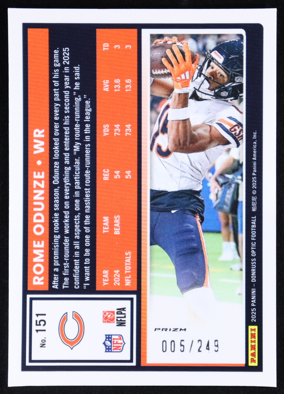Rome Odunze 2025 Panini Donruss Optic RR Blue #151 RC #005/249