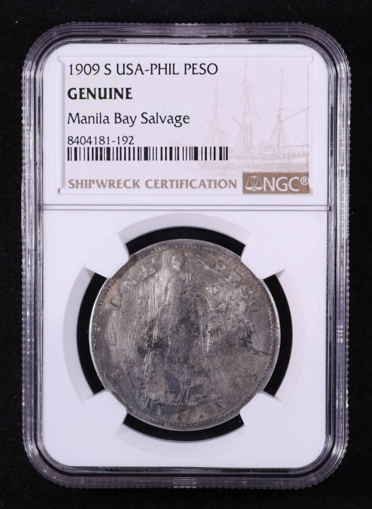 1909-S United States-Philippines Silver Peso, Salvaged from Manila Bay - Shipwreck Certification (NGC Genuine)