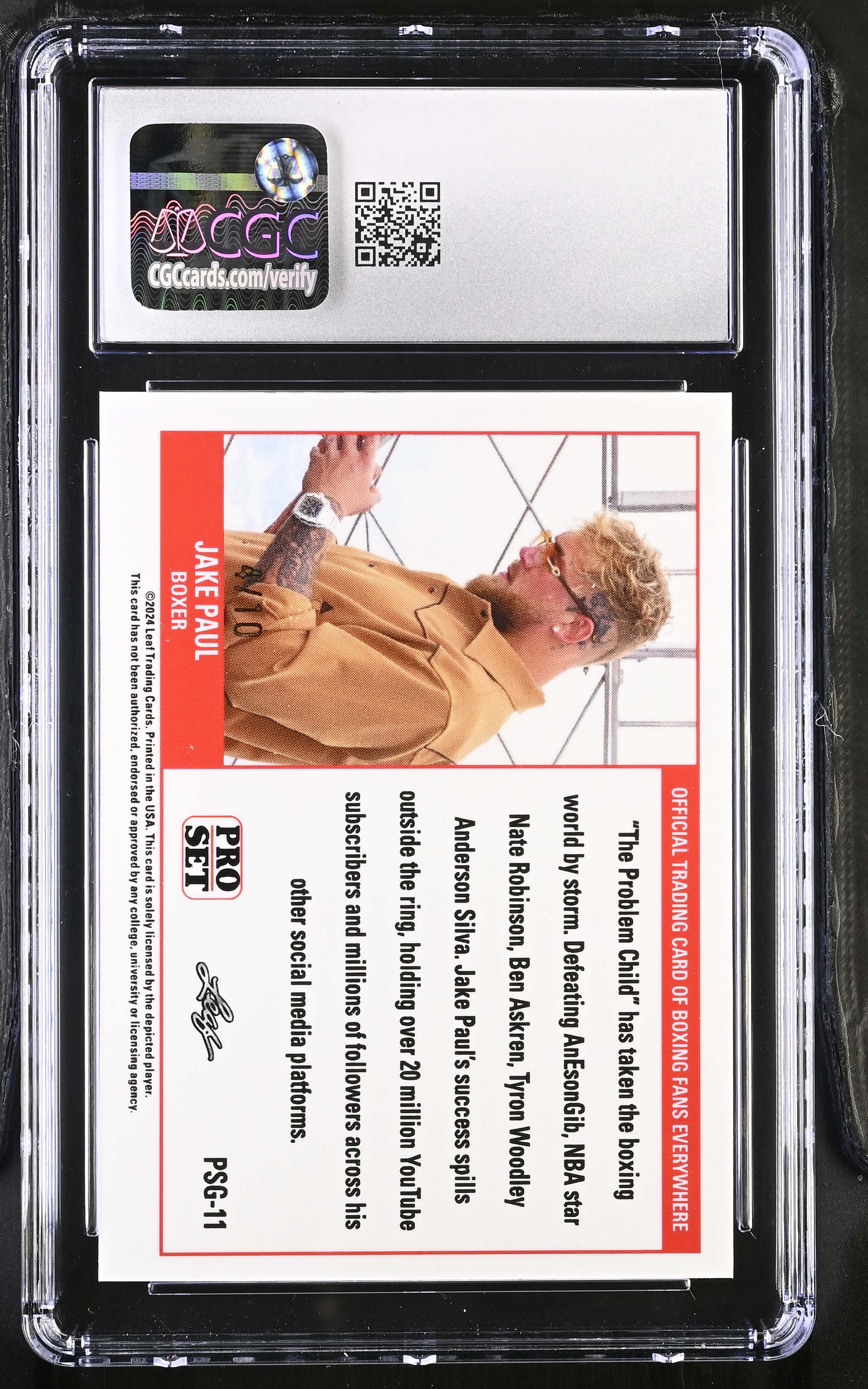 Jake Paul 2023 Leaf Web Exclusives Pro Set Gold Green #PSG-11 #04/10 (CGC 10)