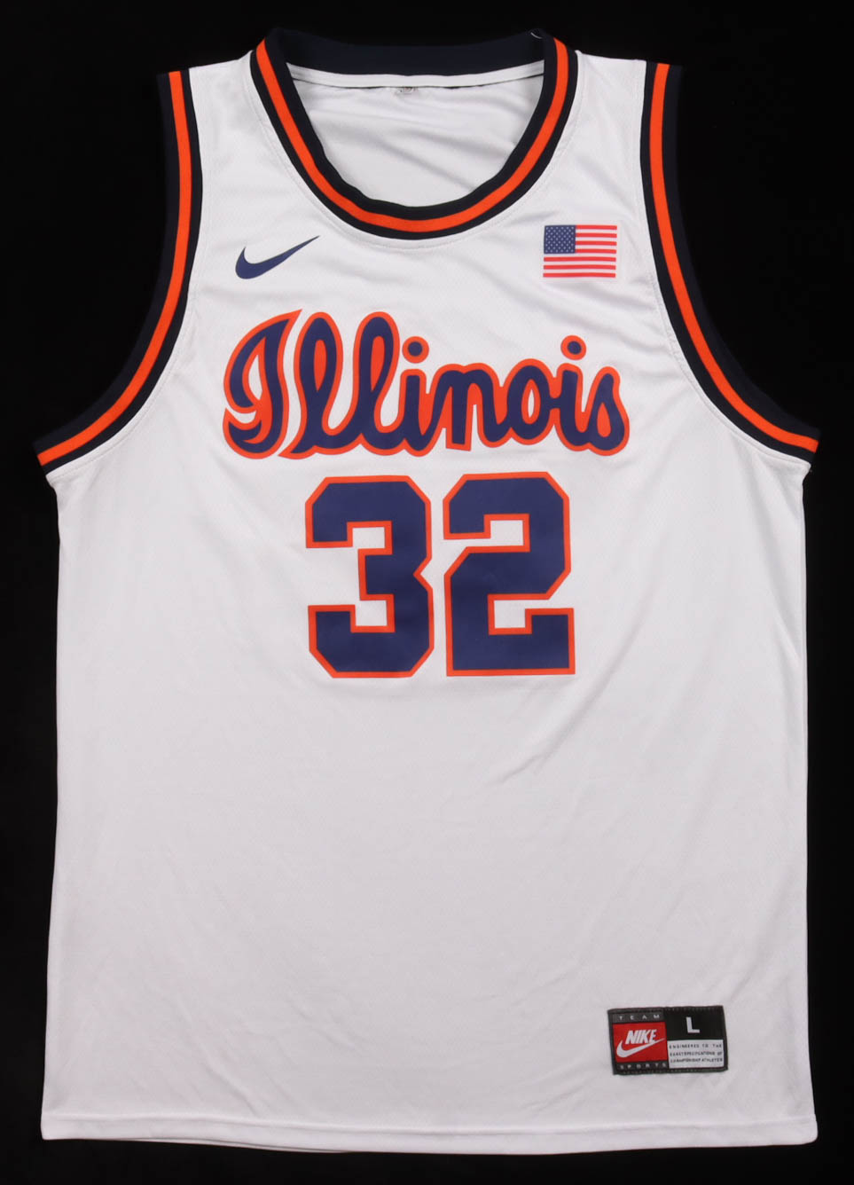 Nike jersey with everything pressed on, size L. Hand-signed by Kasparas Jakucionis (Illinois Fighting Illini). Please note, there is a staining to the left of the reverse number.