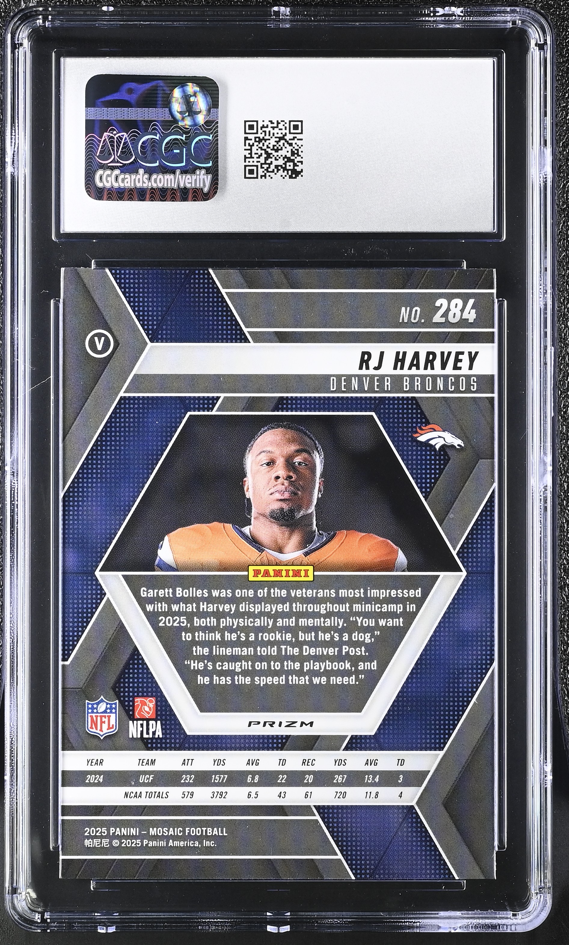 RJ Harvey 2025 Panini Mosaic Rookie Variation Green #284 RC (CGC 10)
