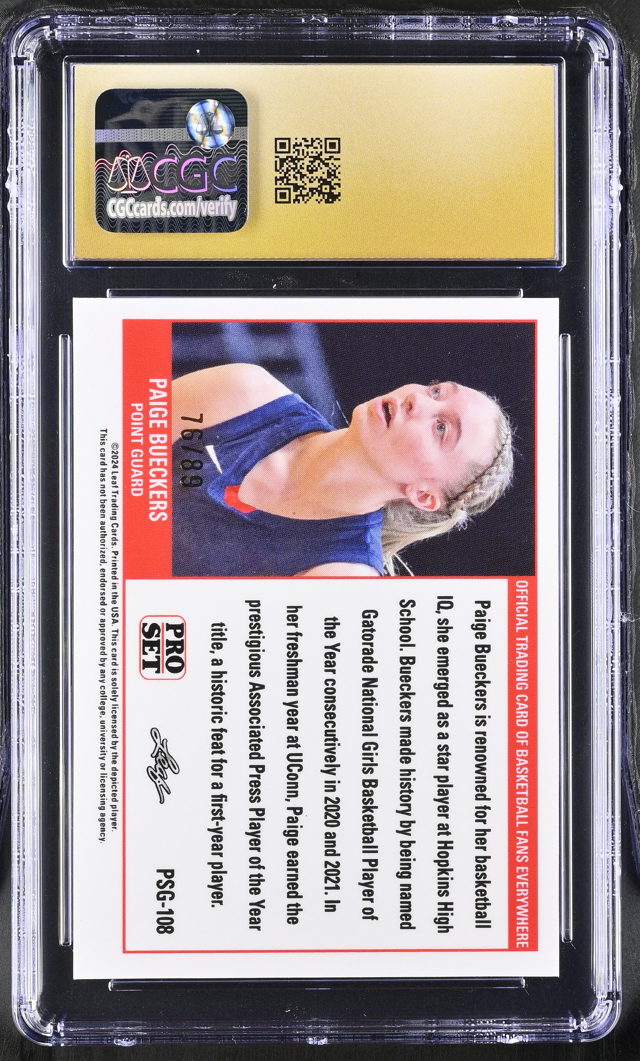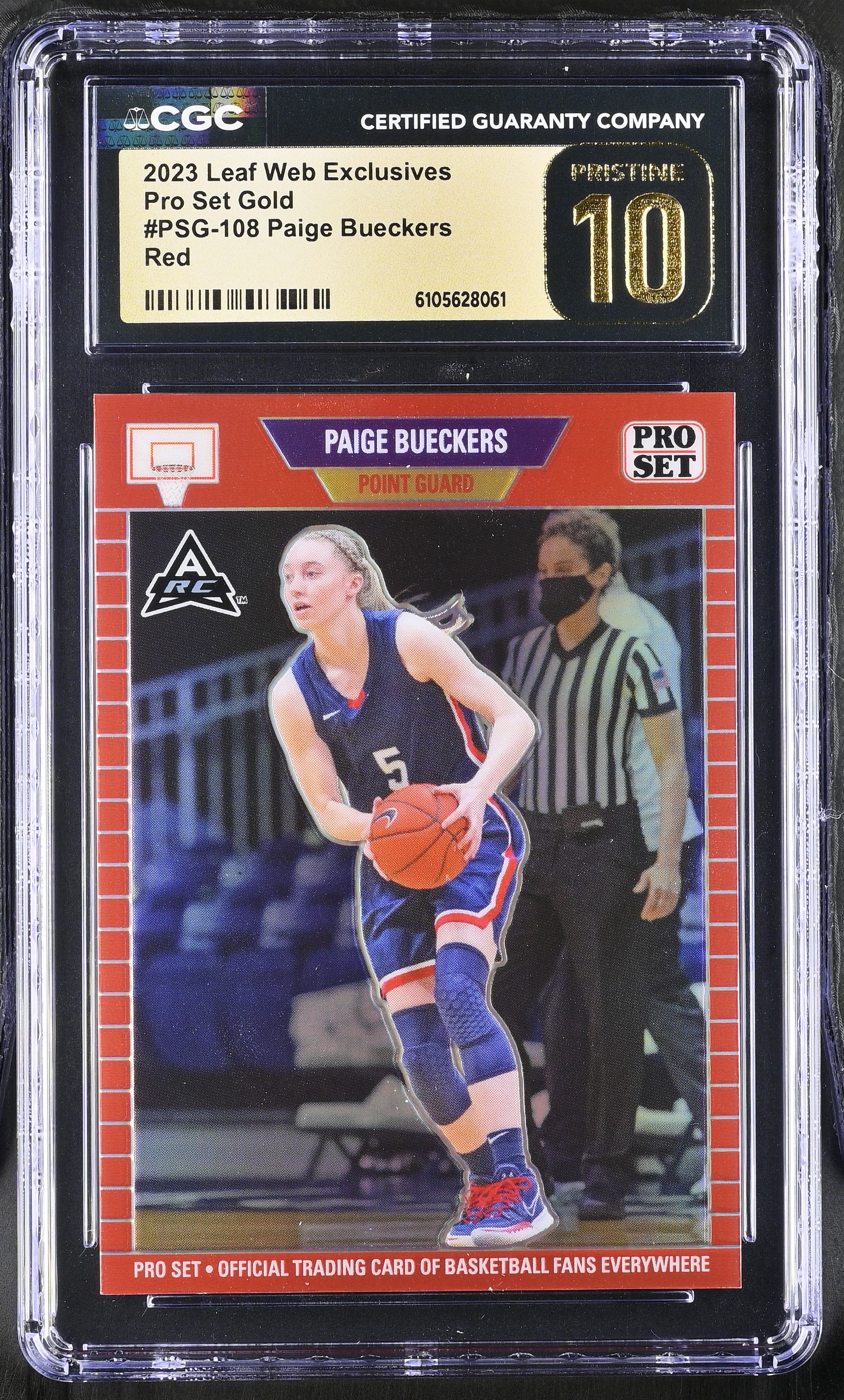 Paige Bueckers 2023 Leaf Web Exclusives Pro Set Gold Red #PSG-108 #76/89 RC (CGC 10 | Black Label)