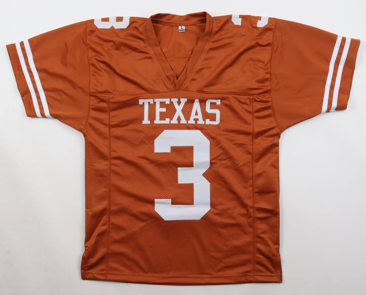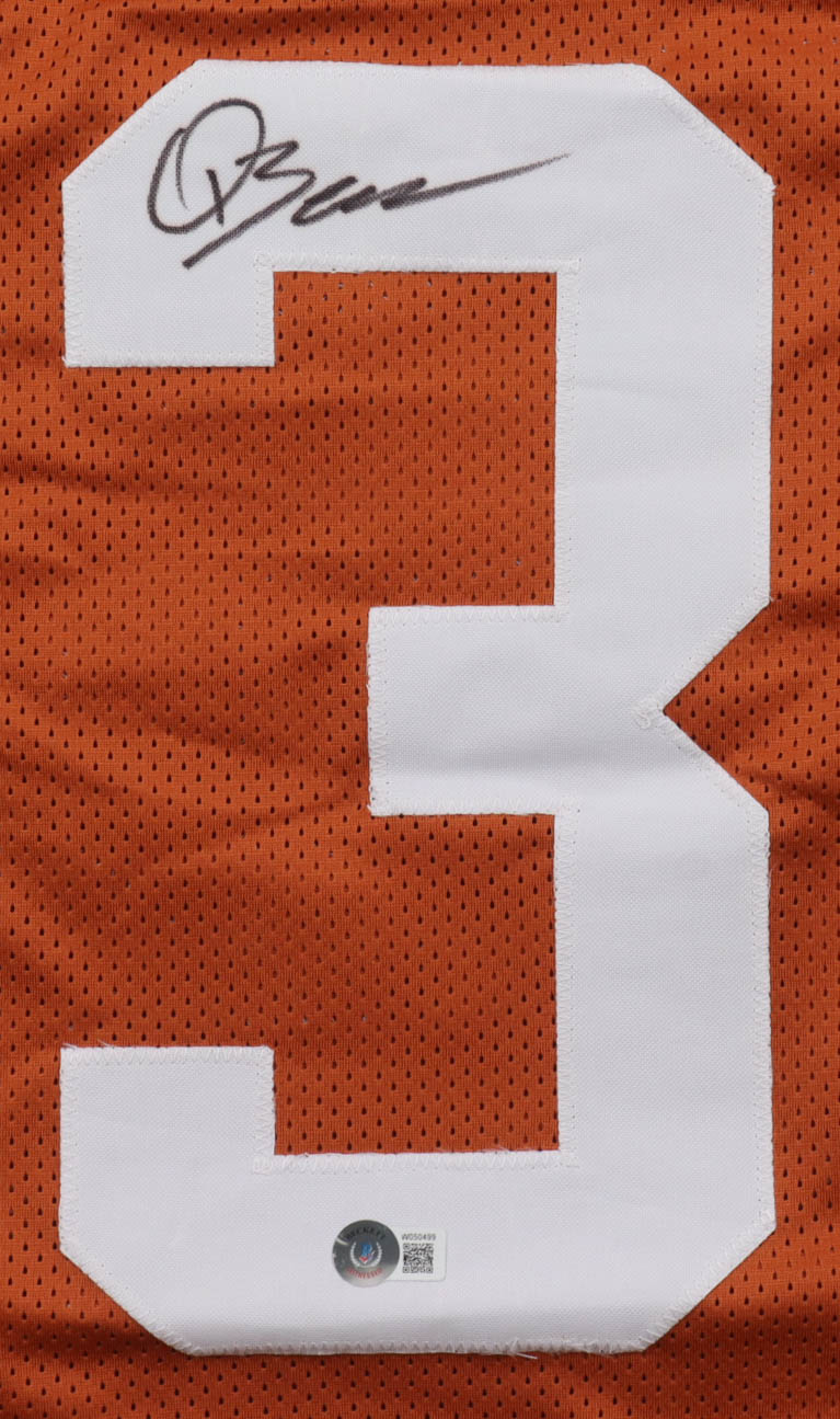 Custom jersey with everything sewn on, size L. Hand-signed by Quinn Ewers.