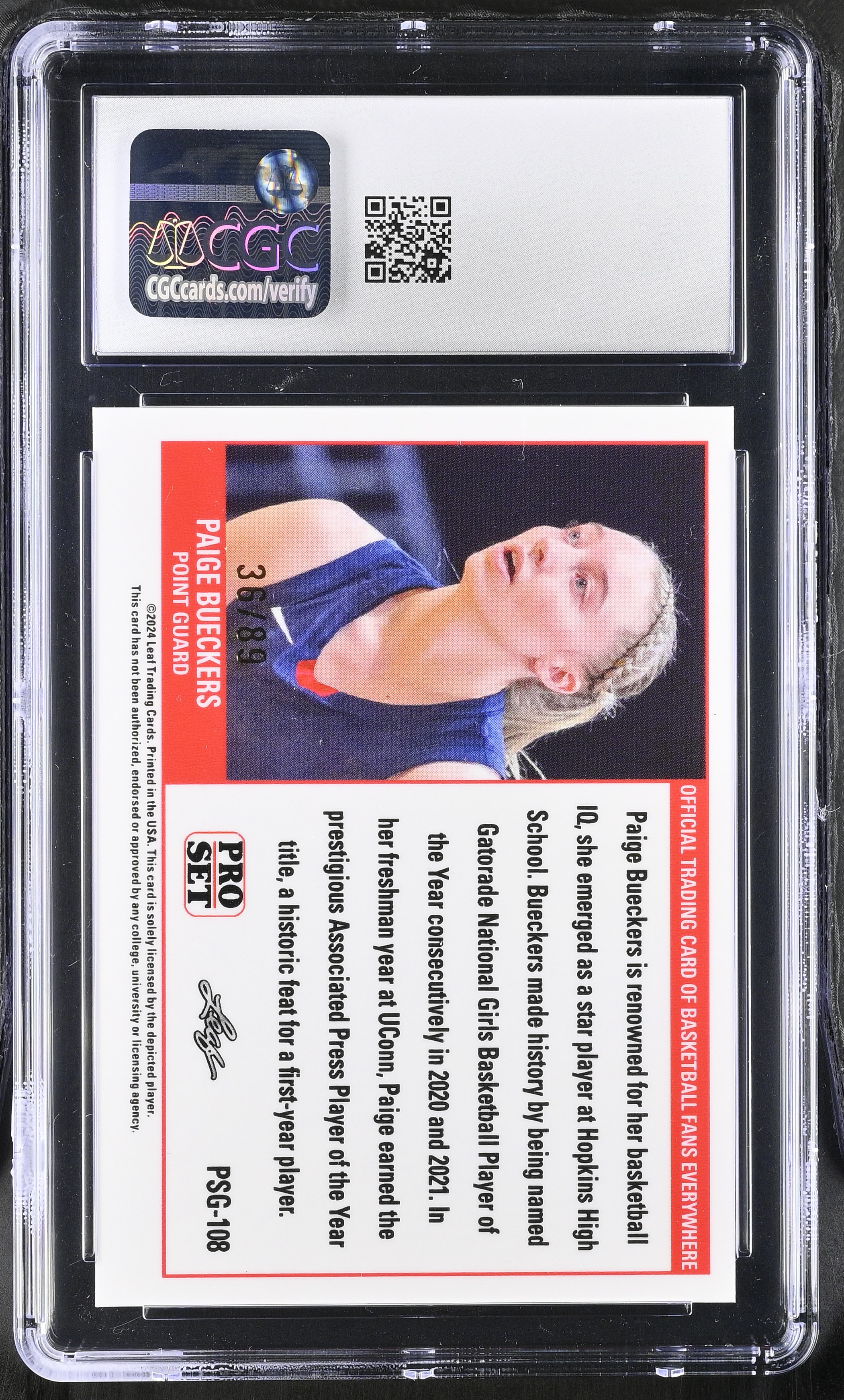Paige Bueckers 2023 Leaf Web Exclusives Pro Set Gold Red #PSG-108 #36/89 RC (CGC 10)