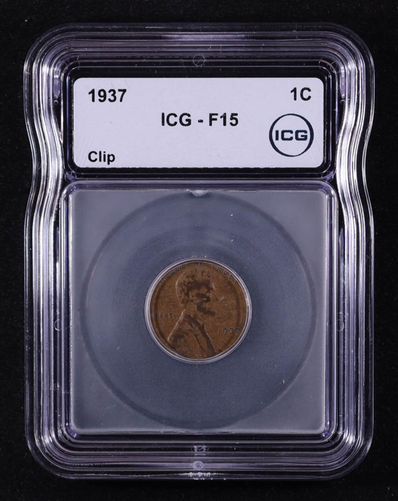 1937 Lincoln Wheat 1C Cent Mint Error: Clip (ICG F15)