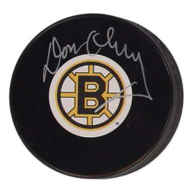 Boston Bruins Logo Hockey Puck. Hand-signed by Don Cherry. Please note, there are minor stains throughout the puck.