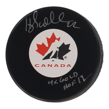 Hayley Wickenheiser Signed Team Canada Logo Hockey Puck Inscribed "4x Gold" & "HOF 19" (COJO)